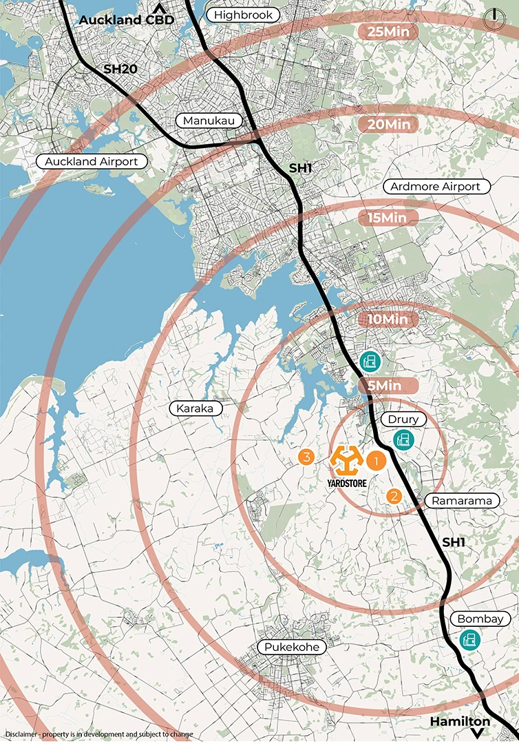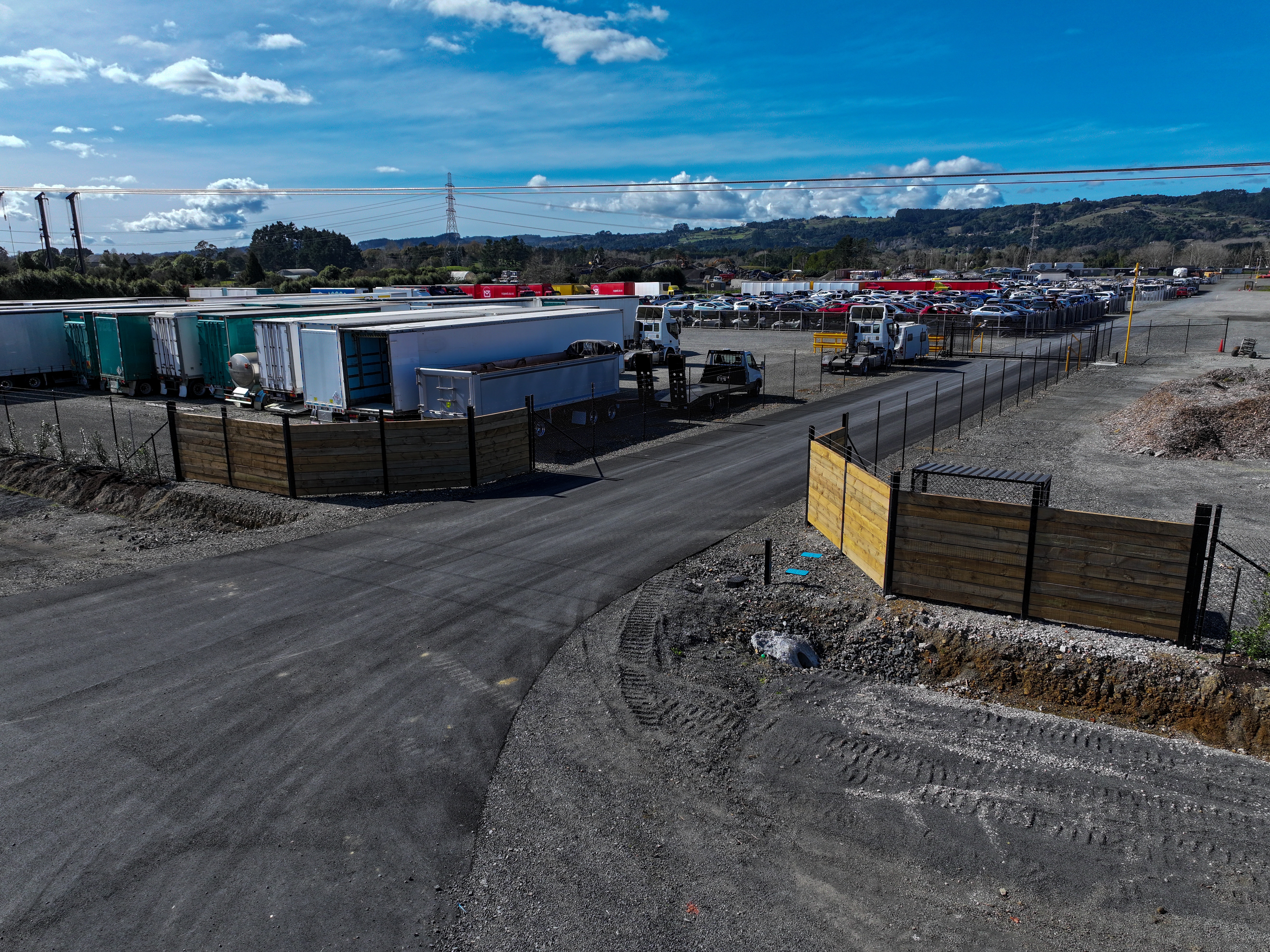 Yardstore Drury 是我們的旗舰场地,为所有未来开发项目树立了标杆, 堅實石子路面,于今年 4 月竣工。安全:场地周围环绕着 1.4 公里长的黑色粉末涂层链环围栏,顶部装有带刺铁丝网,使这片 10.8 公顷的土地成为该地区同类和用途中最安全的场地。入口大门采用键盘门禁控制,确保非标准营业时间的隐私和安全。闭路电视监控入口及物业各处,并可根据客户的特定需求(例如,安装电围栏,以及根据需要提供个人摄像头监控)提供额外的安保措施。 電源:我们已完成拟建500千伏安变压器的开沟,并将根据需要由22,000伏高压电缆供电。 这将使该场地成为该地区设备最齐全的场地,可满足多样化和密集型的电力供应需求。 水源: 此外,我们还从孟买-德鲁里卡瓦河(Bombay-Drury Kaawa)的深层供水管道中新开凿了一条供水管,可轻松获取清澈的淡水。還有 约135,000升水将储存在地面混凝土储水罐中——容量比该地区其他场地的储水罐更大——以确保持续稳定的水压和可靠性,满足客户不断变化的需求。供水主管道在地下,以确保供水不会在地面加热。 路面: 现场设有一条80米长、7米宽的沥青车道,方便半挂车轻松通行。